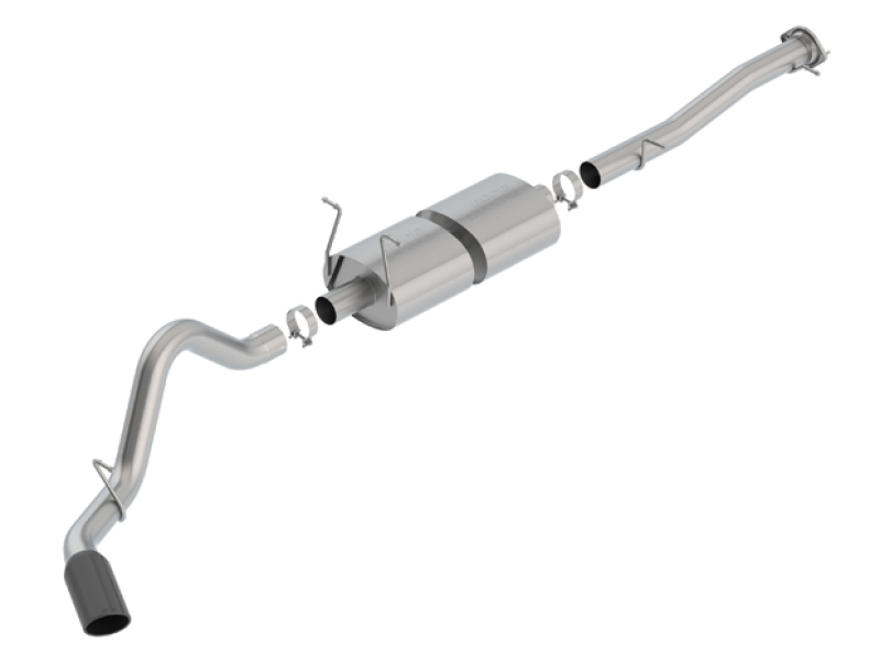 EXCEPT Vehicles with Dual Rear Wheels. This system features a 5″ black chrome on T-304 stainless steel tip. Using Borla(r) Stainless Steel Polish p# 21461 is NOT recommended with these black chrome tips. We suggest cleaning the tips with hot water and a microfiber cloth. Borla(r) Cat-Back(tm) and Axle-Back exhaust systems feature patented straight-through and multi-core technology designed to unleash hidden horsepower. Increased exhaust velocity adds power, driving excitement, fuel economy, and the distinctive Borla(r) Sound of Power respected by motoring enthusiasts everywhere. Each system is built from premium T-304 stainless steel, superior to T-400 series knockoffs (such as 409), to give you the absolute best in performance and durability. Ultra-smooth mandrel bends ensure maximum flow& power, and precision computer-controlled CNC manufacturing ensures an accurate fit. Best of all, Borla(r) stands behind every system with a Million-Mile Warranty. Just what you’d expect from the world’s most experienced (and most winning) exhaust brand.